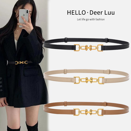真皮细腰带女夏季装饰西装大衣时尚百搭配连衣裙子收腰高级感皮带