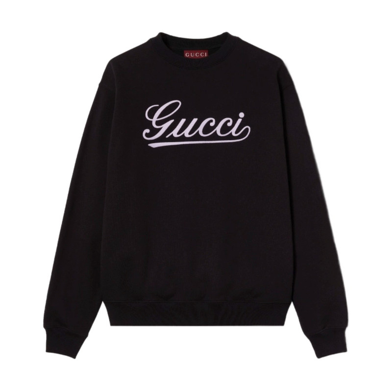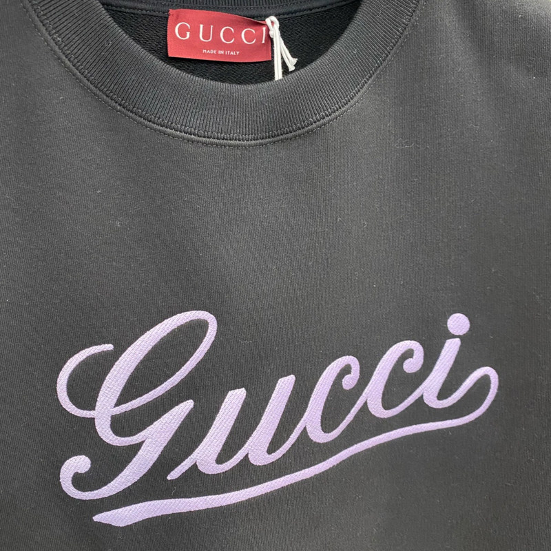 L码现货Gucci古驰 男士女士黑色宽松圆领卫衣紫色字母刺绣 784413