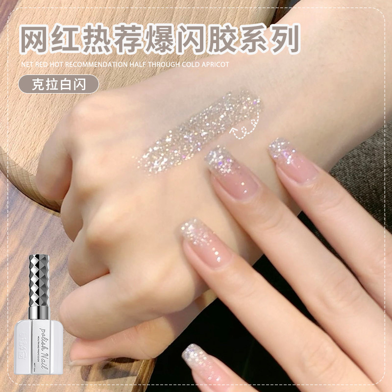 网红爆款点金爆闪指甲油胶2026年新款点银克拉白闪光疗美甲店专用