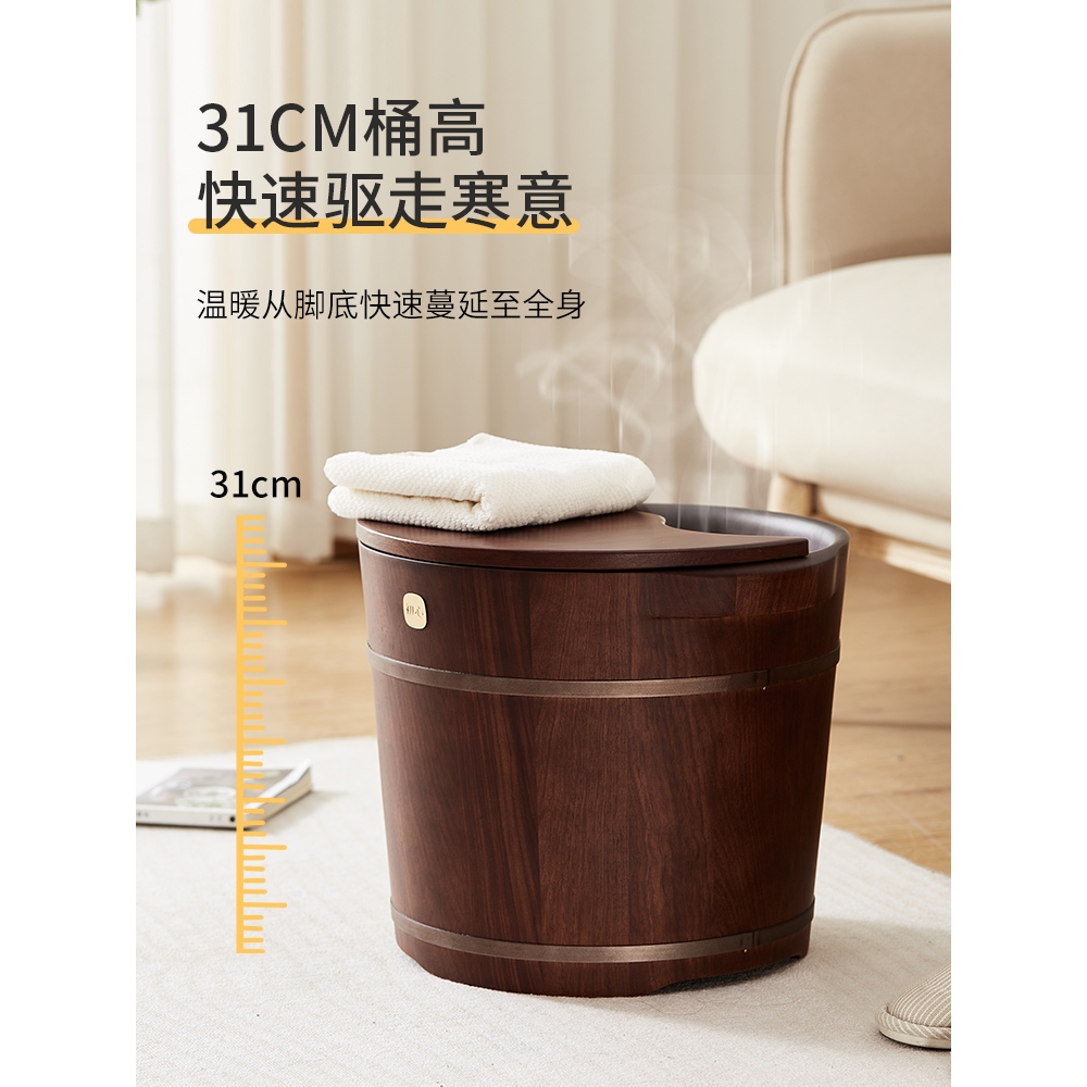 木质足浴桶木桶家用洗脚桶泡脚桶按摩冬天养生带盖实木洗脚盆马小