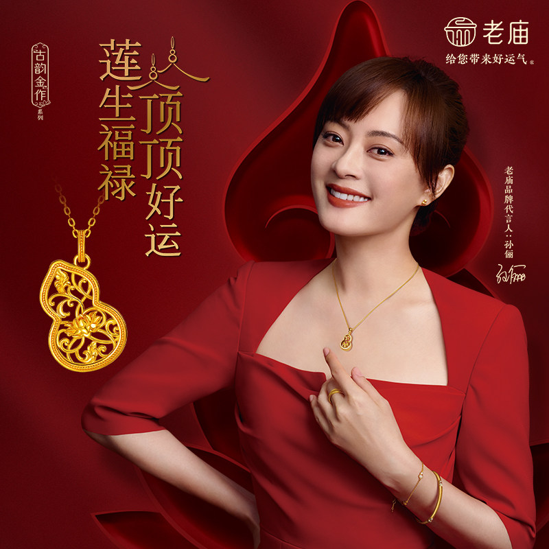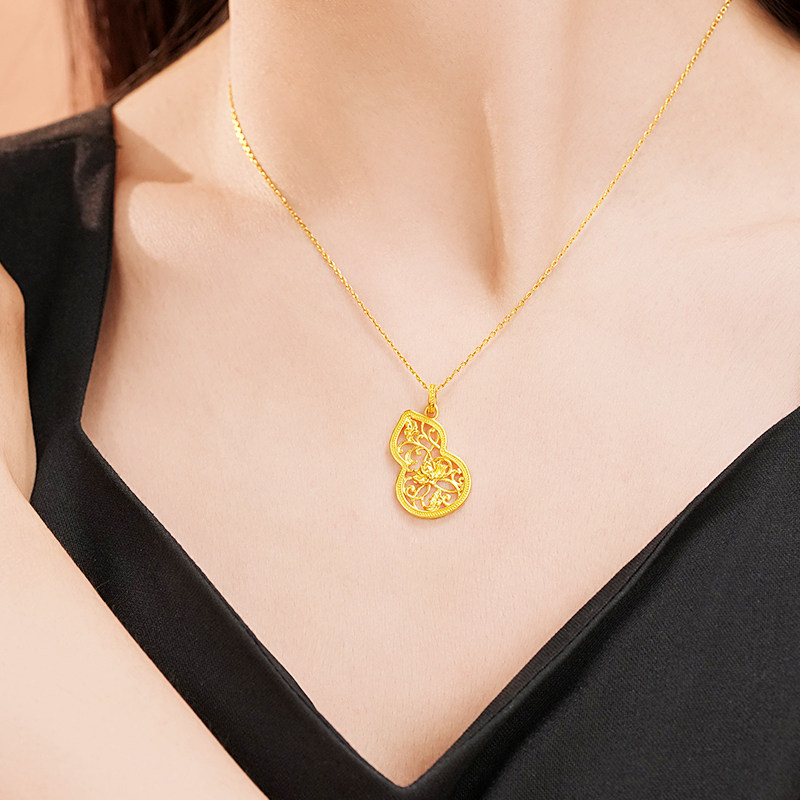 老庙黄金足金缠枝莲葫芦挂坠古韵金作古法精致时尚女官方旗舰正品