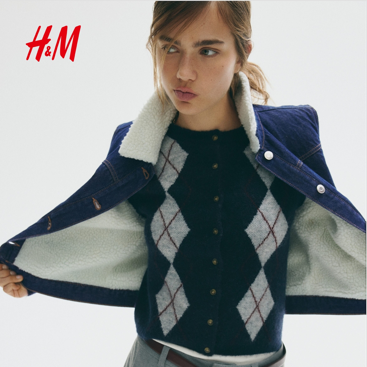 HM女装马夹2025冬新款舒适双面加绒加厚美式牛仔背心上衣1298281