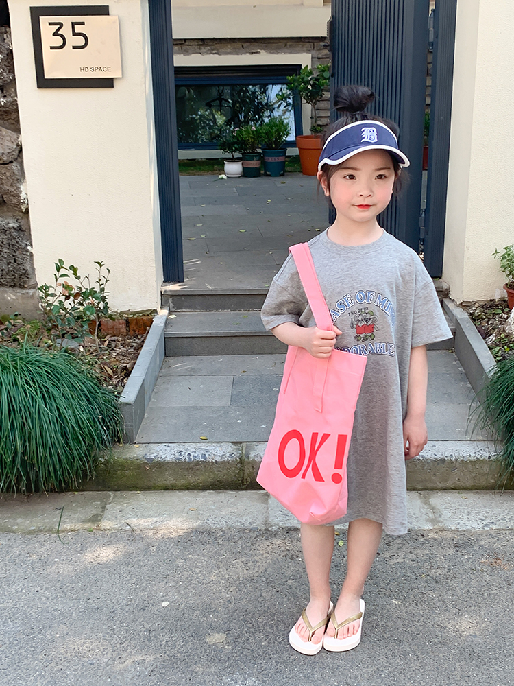 儿童中长款简约卡通懒人裙T女童T恤裙宝宝韩版宽松休闲连衣裙夏季