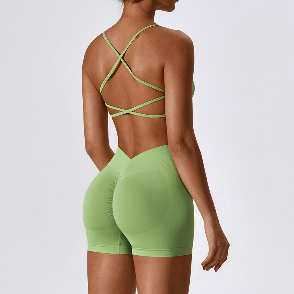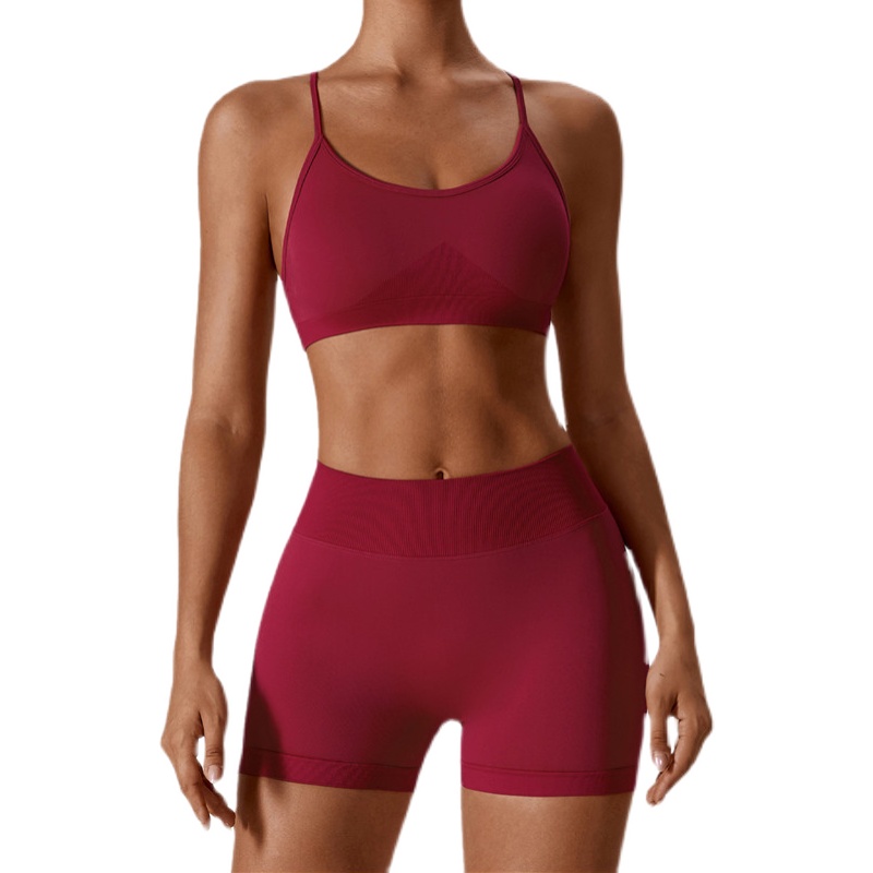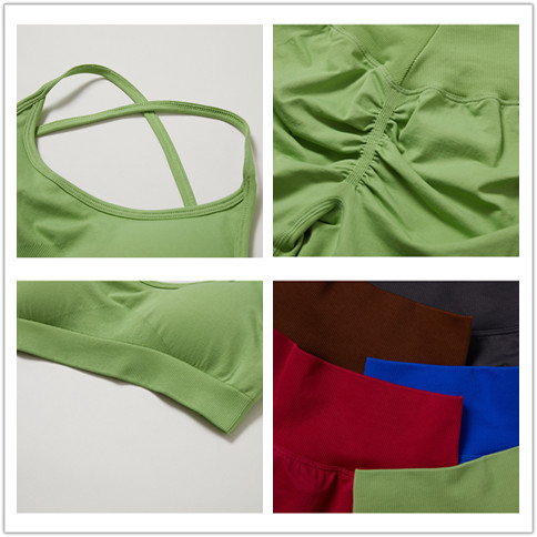 新款欧美性感美背健身服套装透气跑步运动文胸高腰提臀裤瑜伽服女