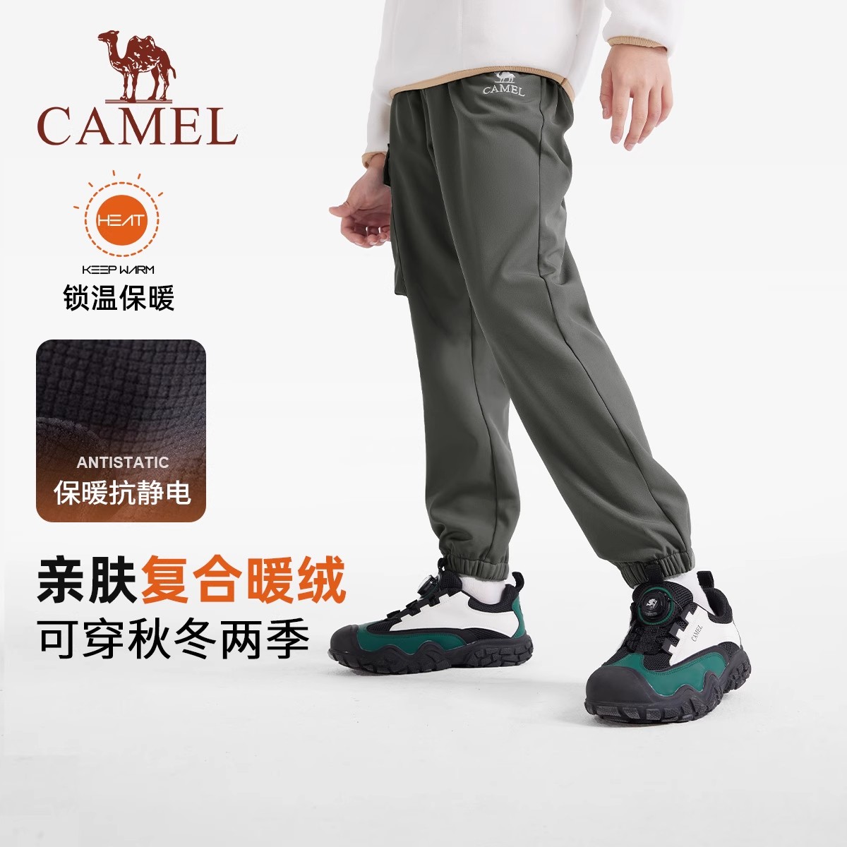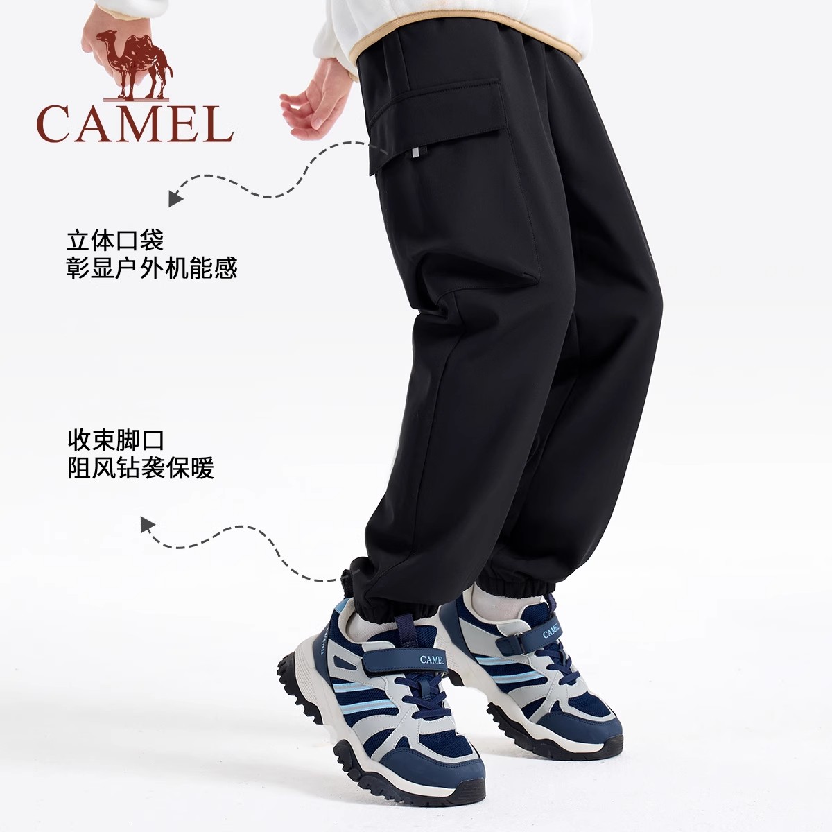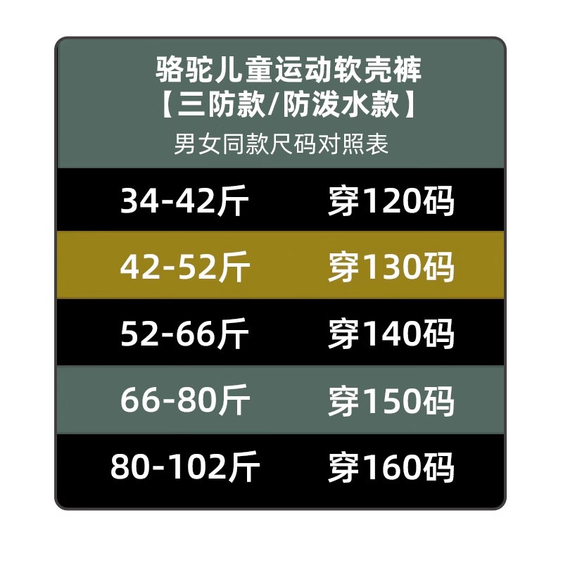 骆驼儿童软壳裤保暖户外运动裤加绒男女童冲锋裤
