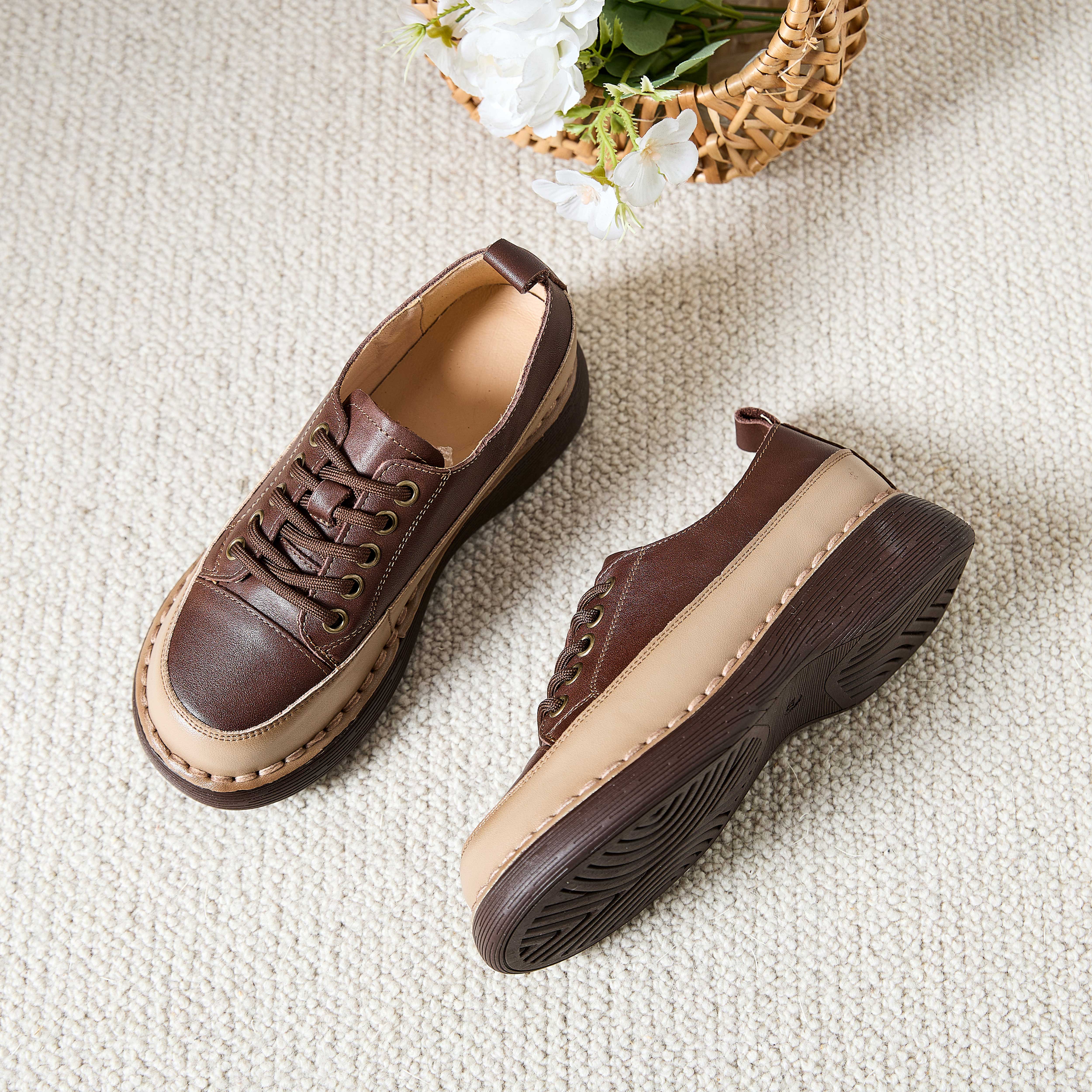 592603头层牛皮纯手工橡胶防滑软底软面圆头深口免系带复古休闲鞋