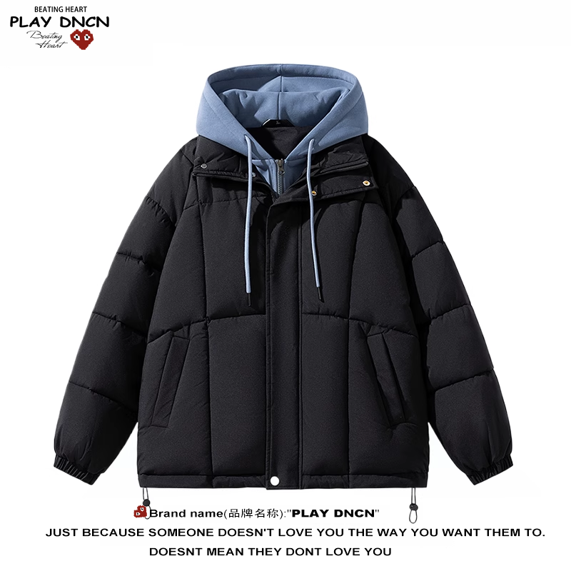 PLAY DCDN假两件棉服男款冬季宽松休闲棉衣外套日系潮流连帽棉袄