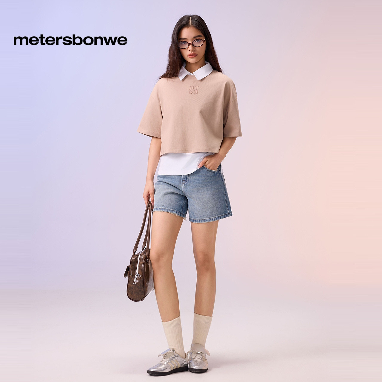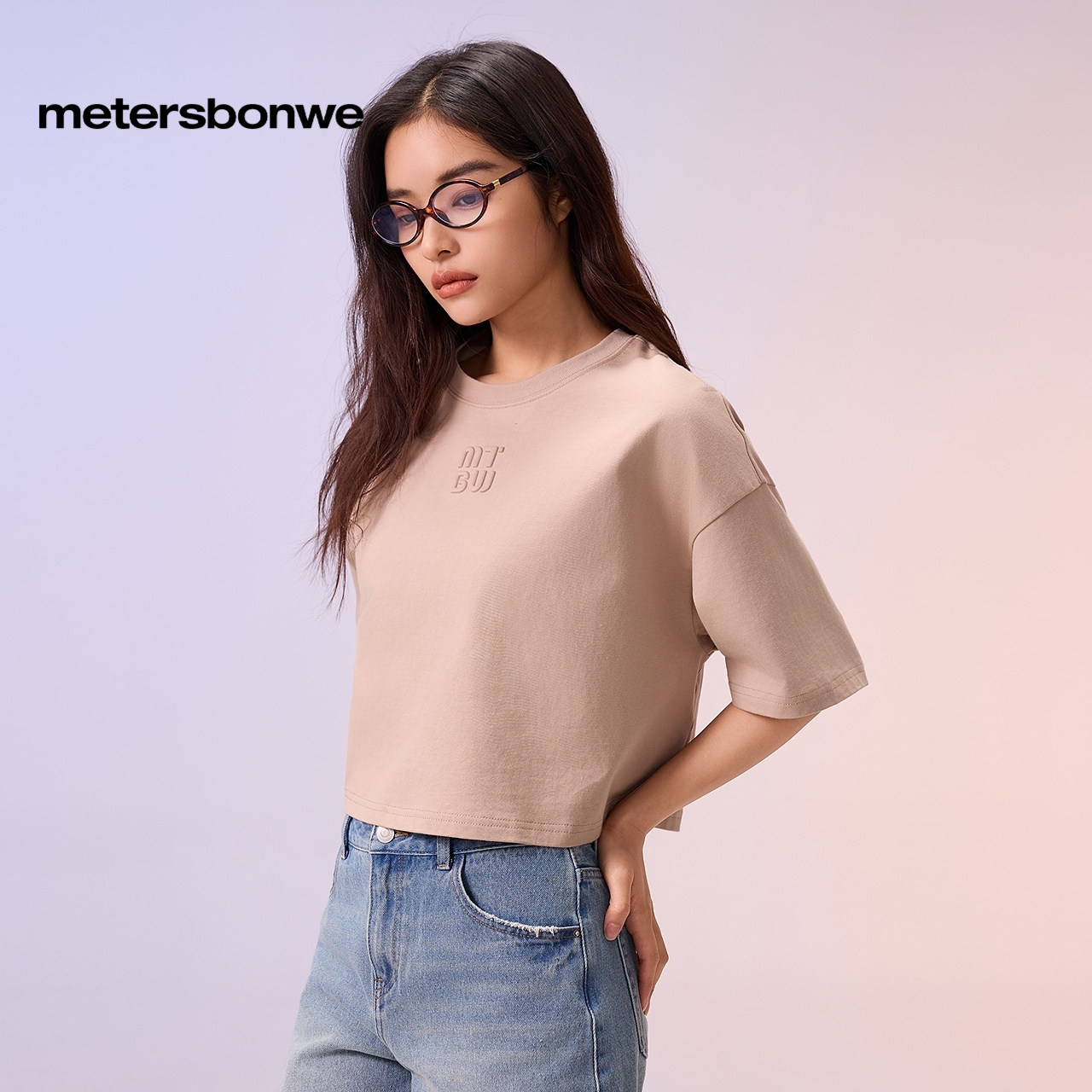 [商场同款]美特斯邦威T恤女秋新宽松短款短袖纯棉精棉纯色上衣