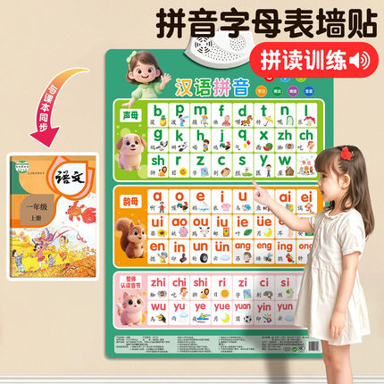 25年汉语拼音有声挂图同步教材拼音拼读训练神器早教墙贴拼音机