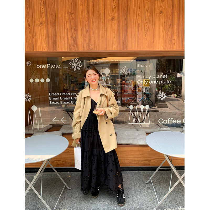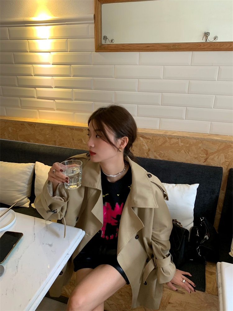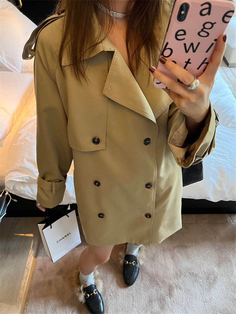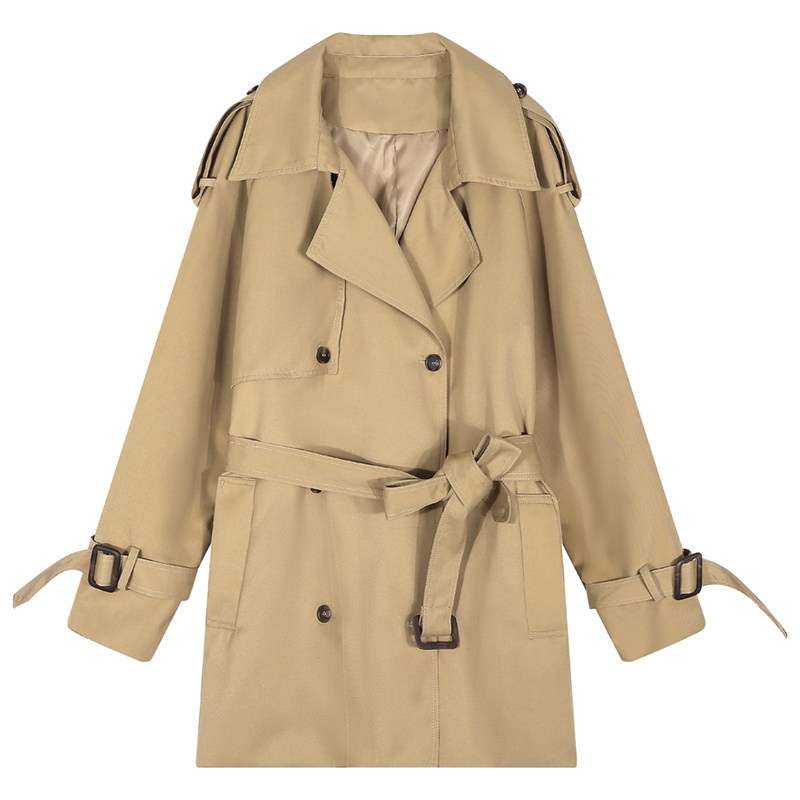 落落狷介风衣外套女2025年新款早秋系带收腰大衣小个子秋装卡其色