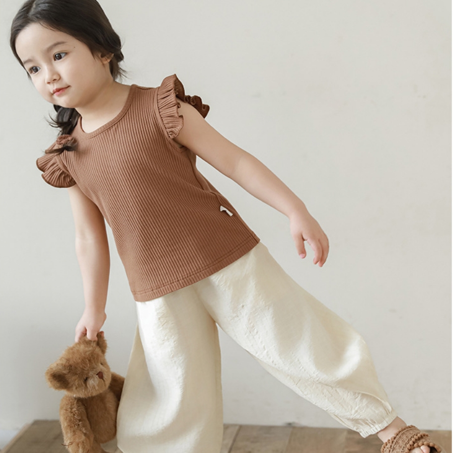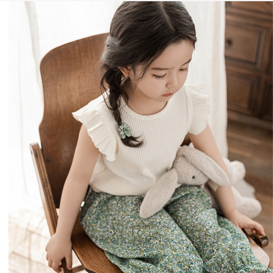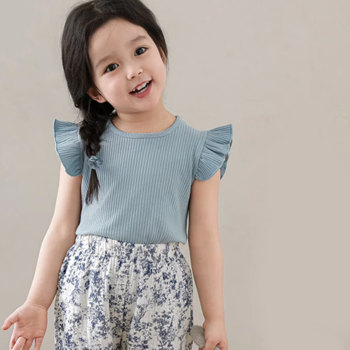 女童飞袖t恤 纯色花边短袖上衣洋气背心2025夏季新款儿童宝宝衣潮