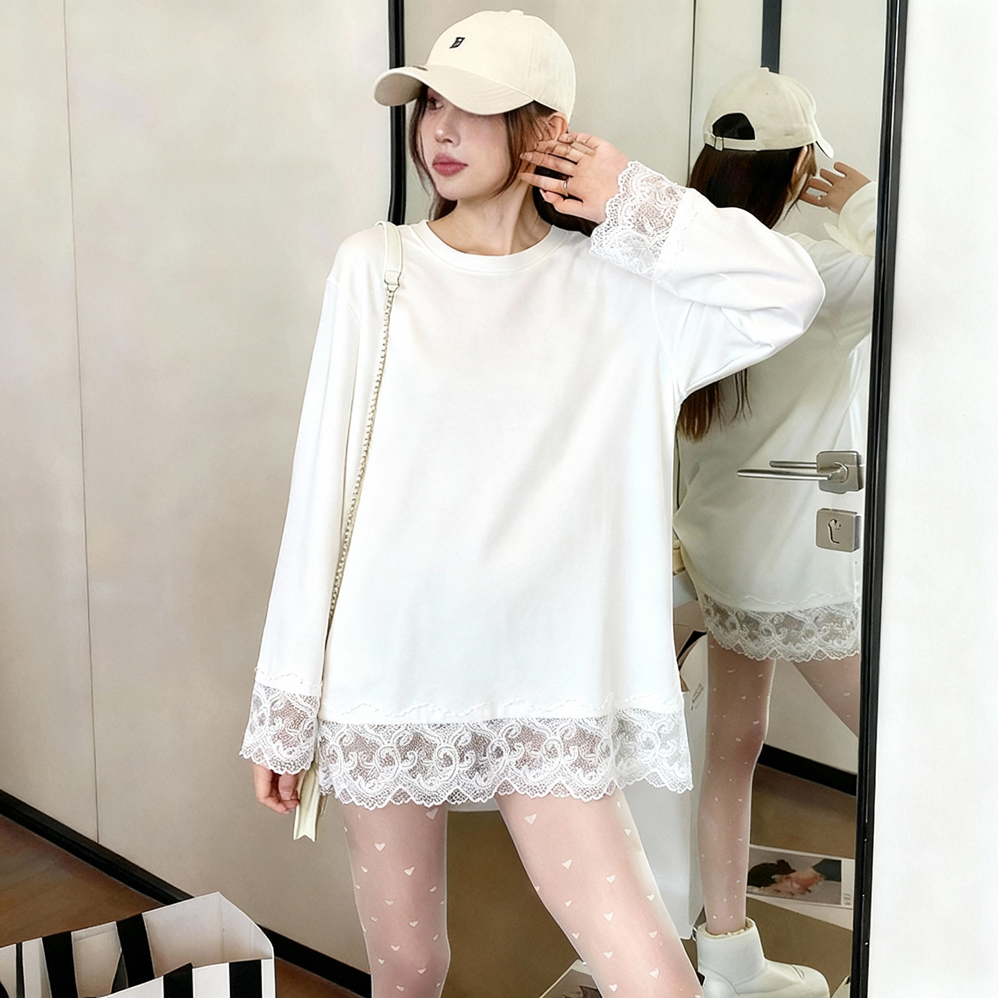 纯棉打底衫蕾丝小心机内搭可外穿