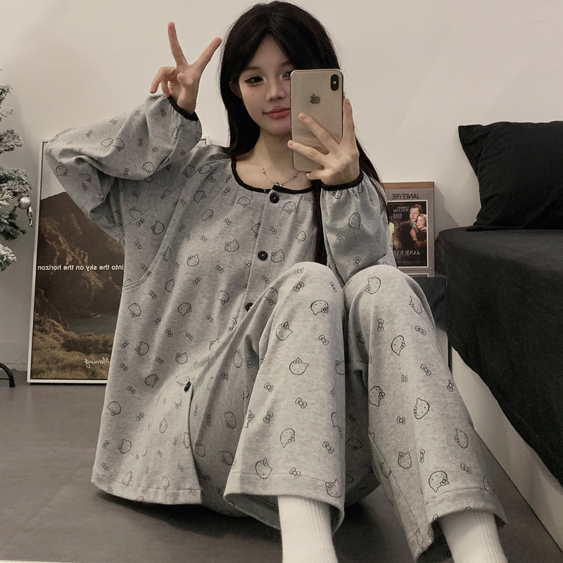 带胸垫月子服9月份春秋季纯棉产后大码孕妇睡衣夏薄款哺乳喂奶10