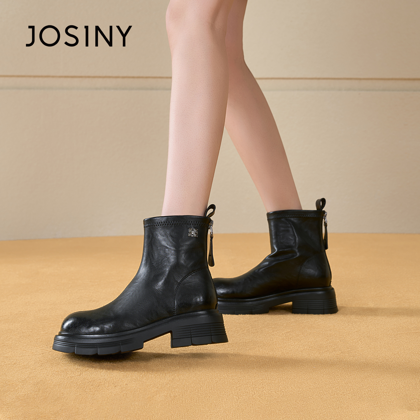卓诗尼厚底切尔西靴女2025秋冬新款英伦风厚底瘦瘦靴甜酷小短靴