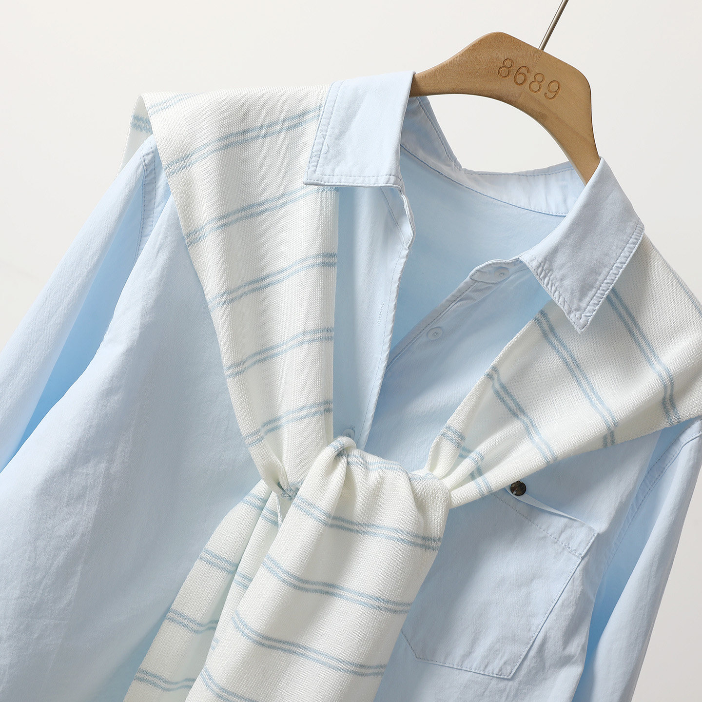 WEILIAN威廉93001刺绣笑脸长袖衬衫+条纹披肩两件套装女休闲上衣