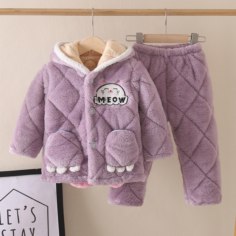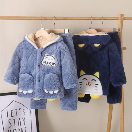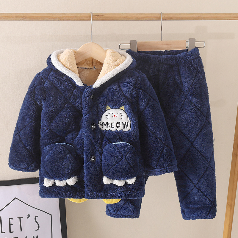 冬季儿童睡衣三层夹棉加绒加厚男童小男孩小中大童宝宝家居服棉袄