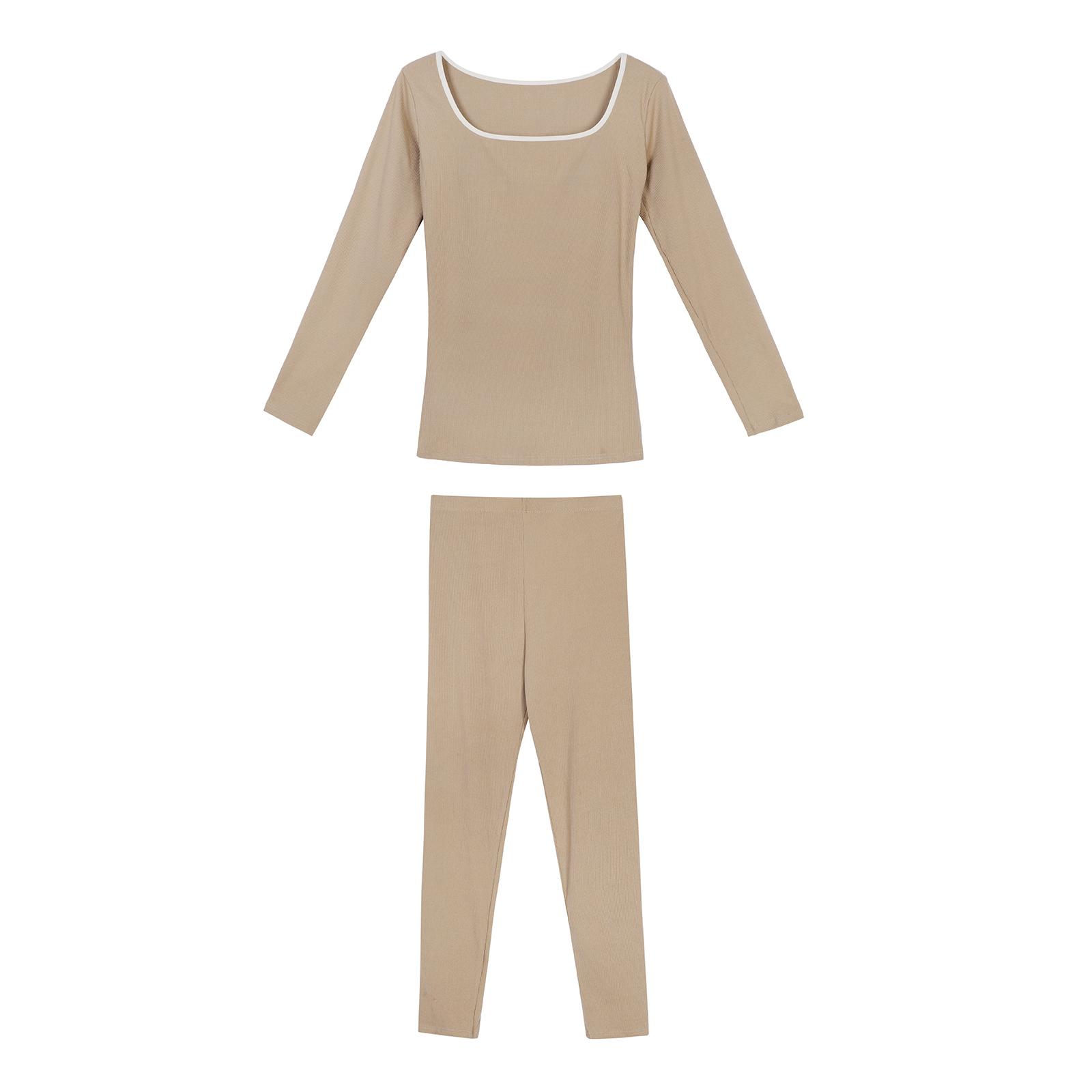 JoyceBra带胸垫保暖内衣女秋冬薄款方领显瘦内搭打底秋衣秋裤套装