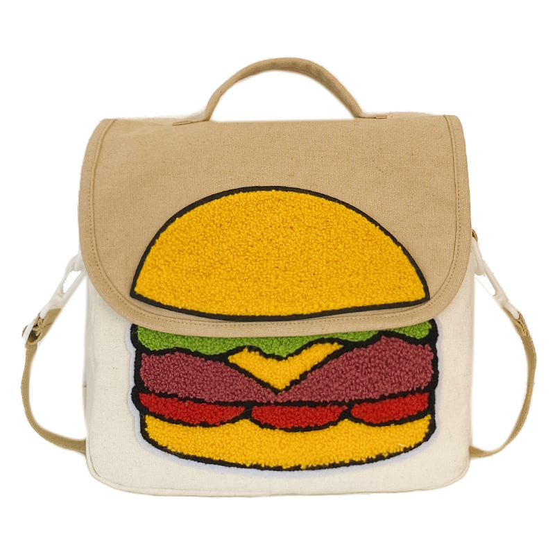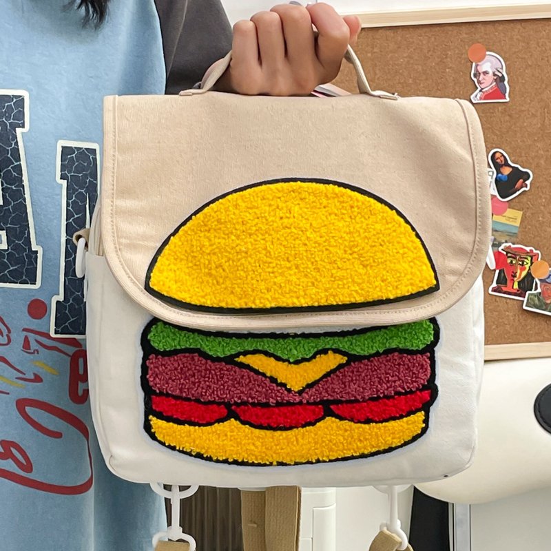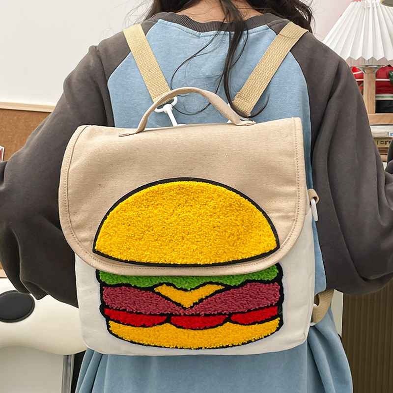 韩国ins可爱卡通汉堡包双肩包包女帆布背包 日系软妹小学生书包女