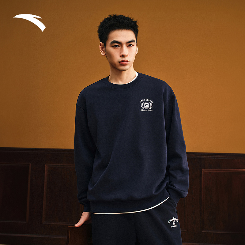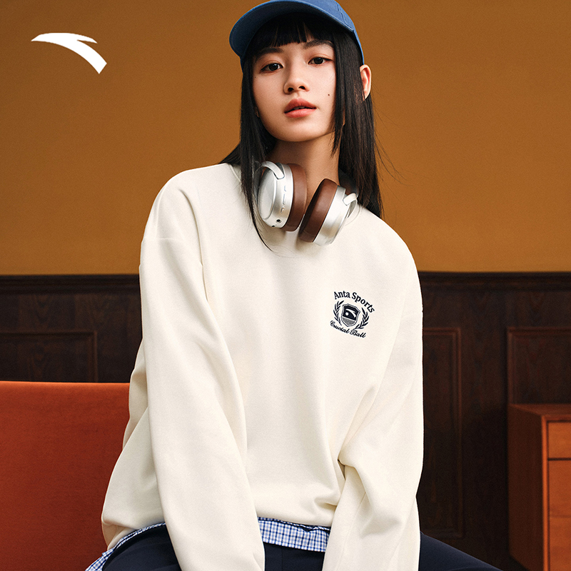 安踏加绒套头卫衣男女同款秋冬新款圆领休闲宽松长袖针织运动上衣