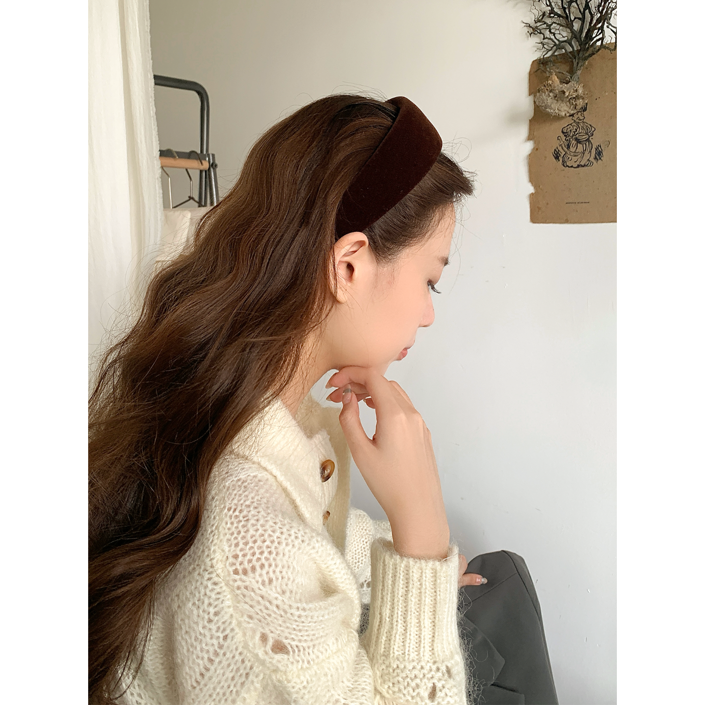 Busan秋冬宽边丝绒海绵发箍复古高颅顶头箍洋气不勒头显脸小发饰