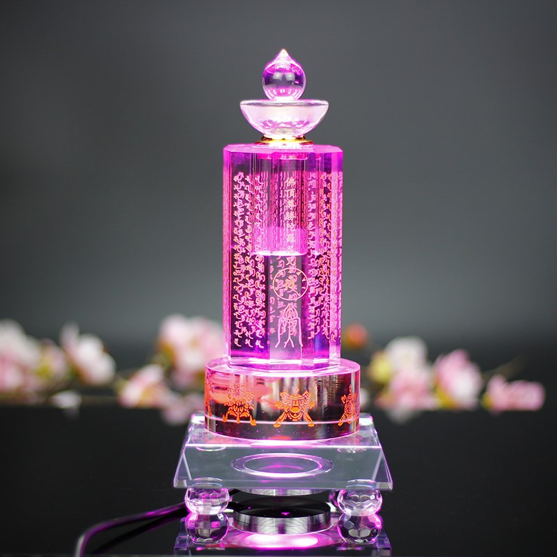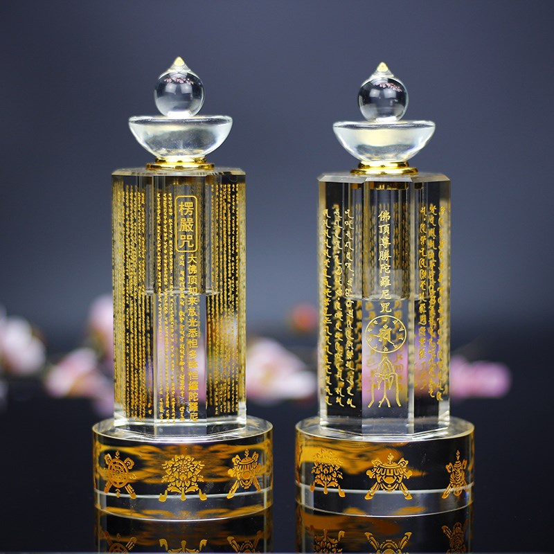 水晶楞严咒经幢塔佛顶尊胜陀罗尼塔家用装藏密封佛具桌面摆木底座