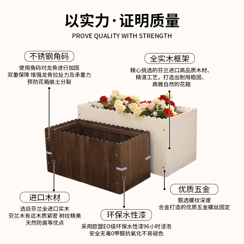 碳化防腐木花箱种菜箱木质花盆露台长方形屋顶花园白色种植箱特大
