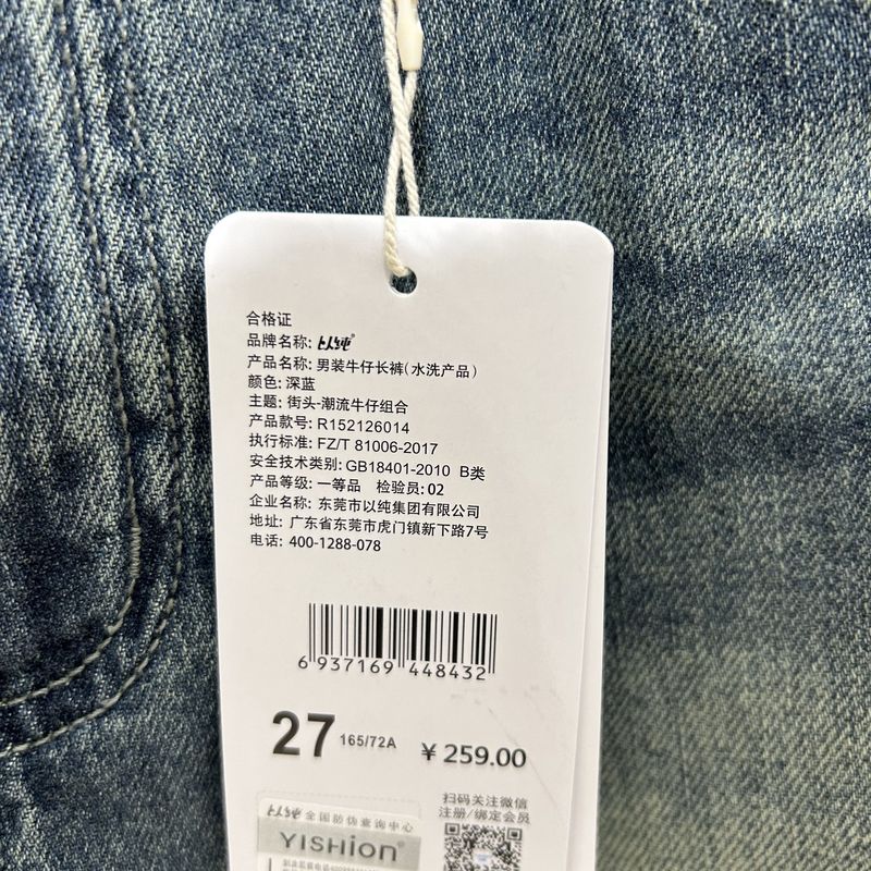 2025年夏季新款新品休闲时尚款男装阔腿牛仔长裤R152126014以纯