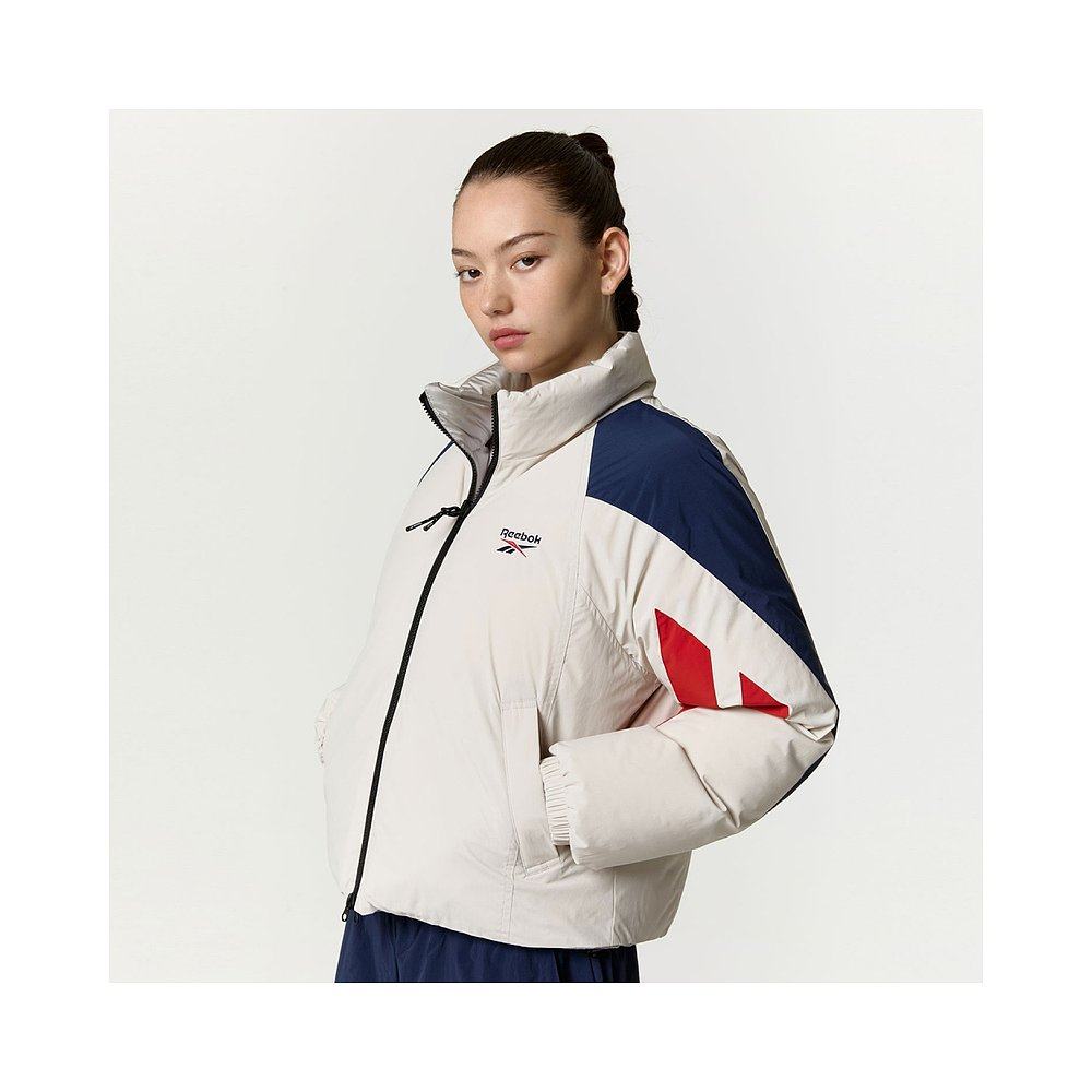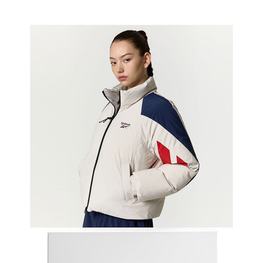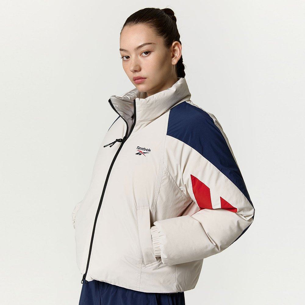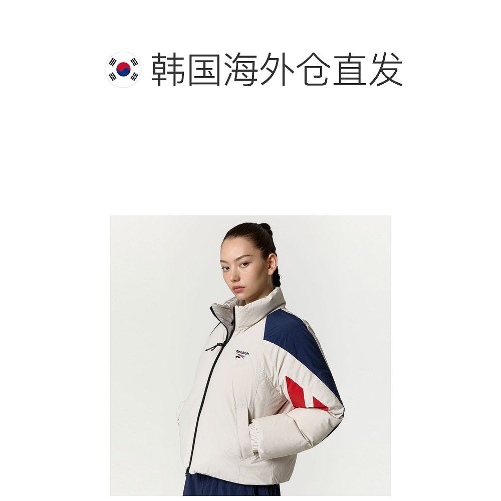 韩国直邮Reebok 拼色Logo立领长袖短款双面穿羽绒服 女款 米色