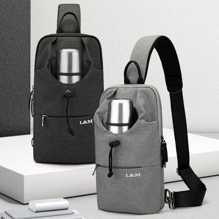 L&M胸包男士单肩斜挎包潮牌多功能水壶小挎包运动休闲通勤包防水