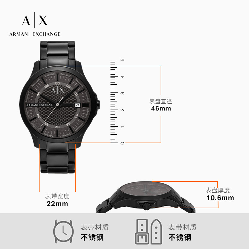 ARMANI EXCHANGE/阿玛尼男士手表圆形大表盘钢带简约石英腕表官方