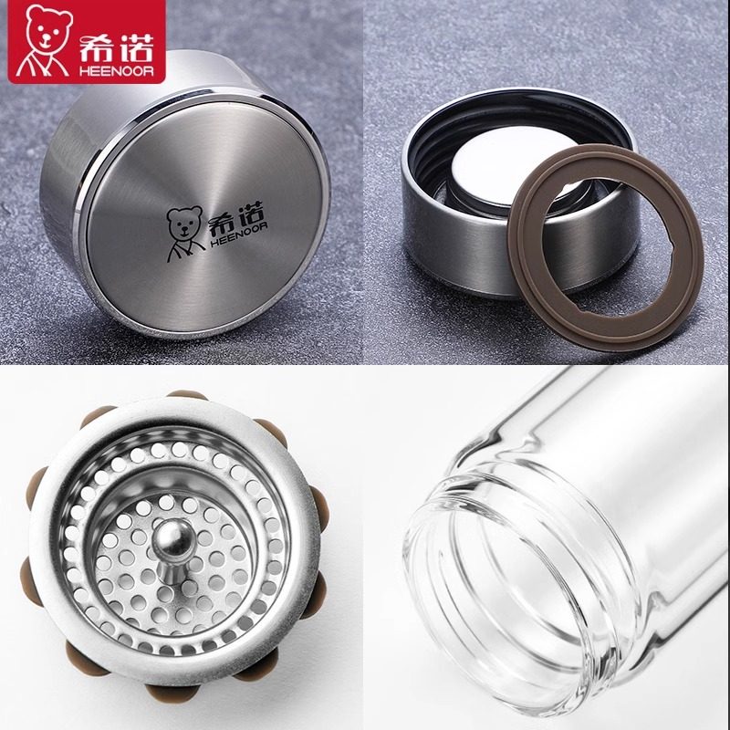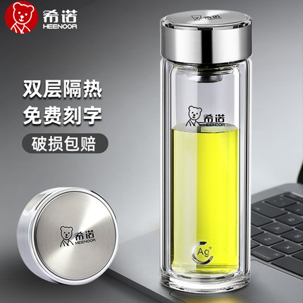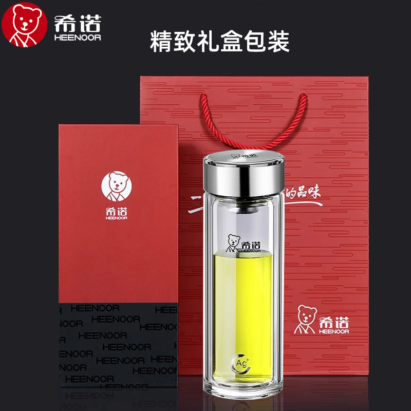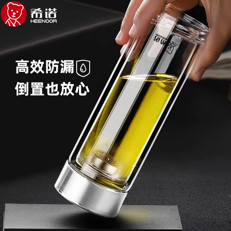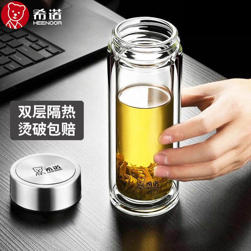 希诺双层玻璃杯加厚大容量泡茶杯商务杯子办公室男士隔热水杯定制