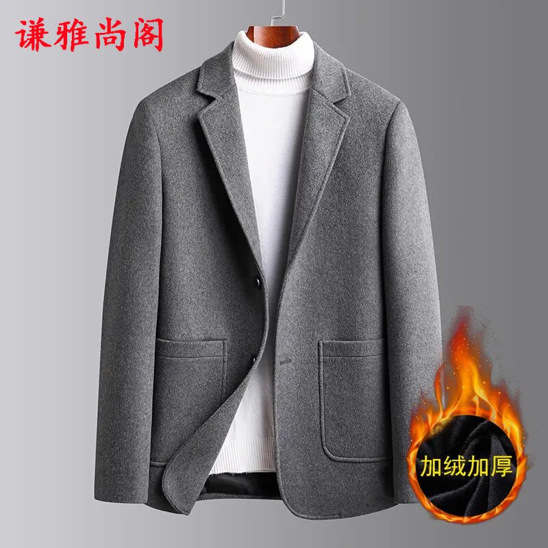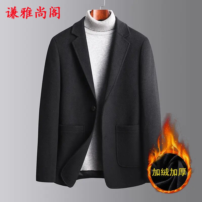 休闲西装秋冬厚款毛呢西服男潮流修身羊毛小西装男士妮子外套上衣