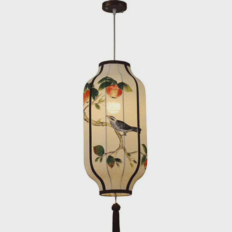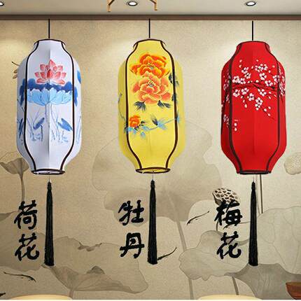 新中式酒店仿古手绘长灯笼火锅店茶楼布艺装饰创意铁艺吊灯餐厅