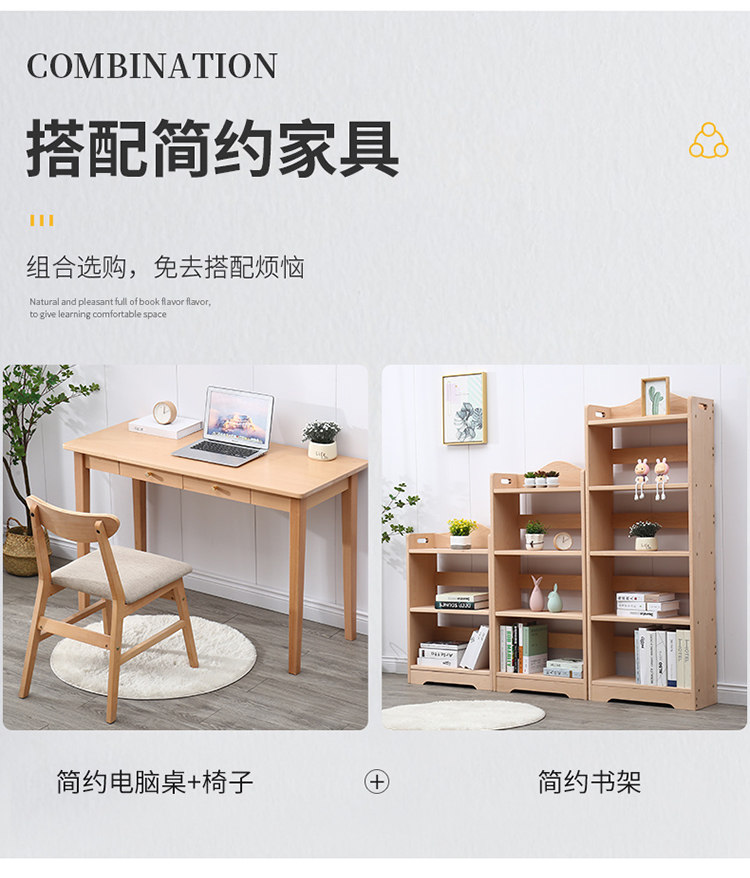 全实木榉木卧室儿童小户型它成套家具架子书架原木单个书柜日式