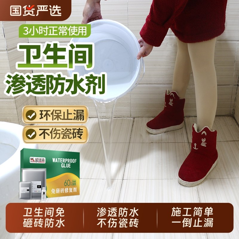 卫生间防水渗透剂免砸砖透明防水胶漏水补漏地面瓷砖渗透涂料材料