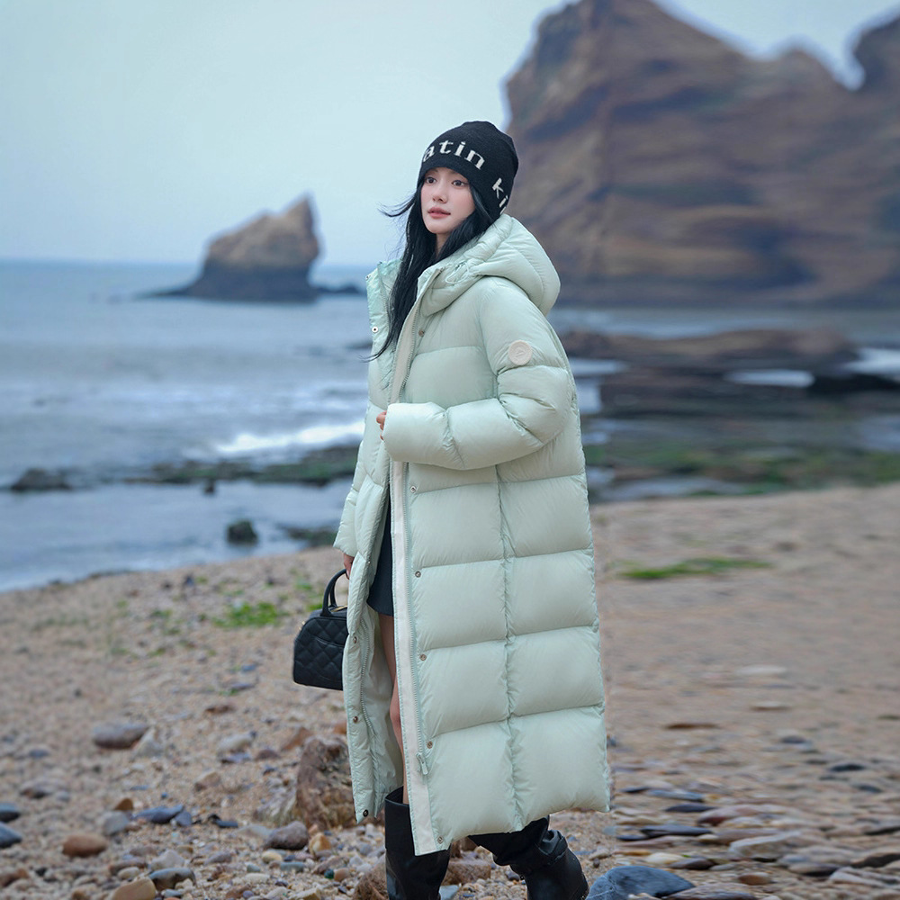 杜邦三防白鸭绒羽绒服女中长款