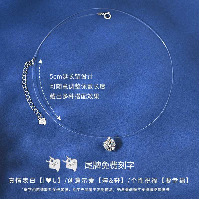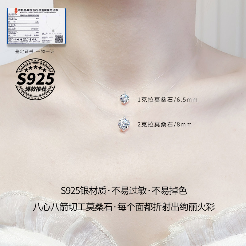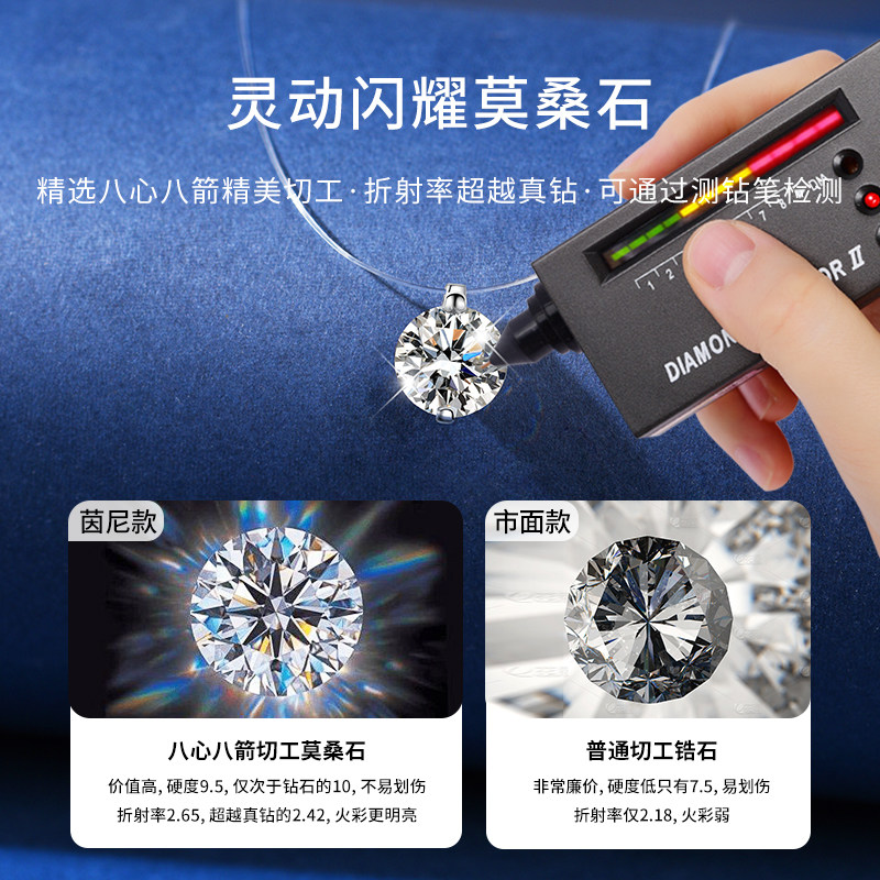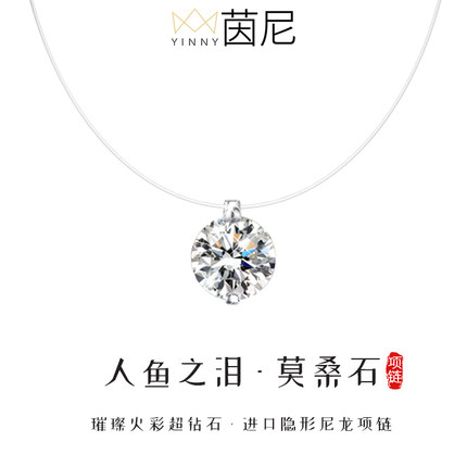 人鱼之泪项链女纯银莫桑石吊坠单颗钻石颈链隐形鱼线超闪圣诞礼物