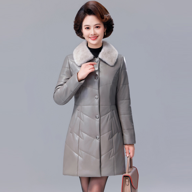 新款真皮羽绒服女中长款海宁皮衣外套加绒加厚妈妈冬装毛领皮棉衣