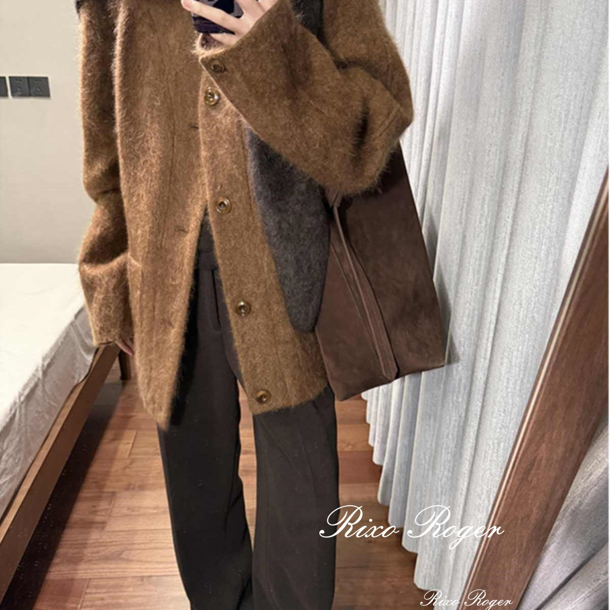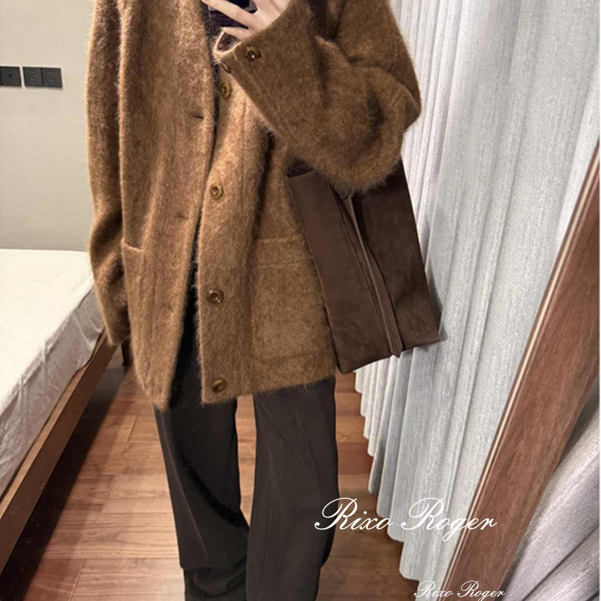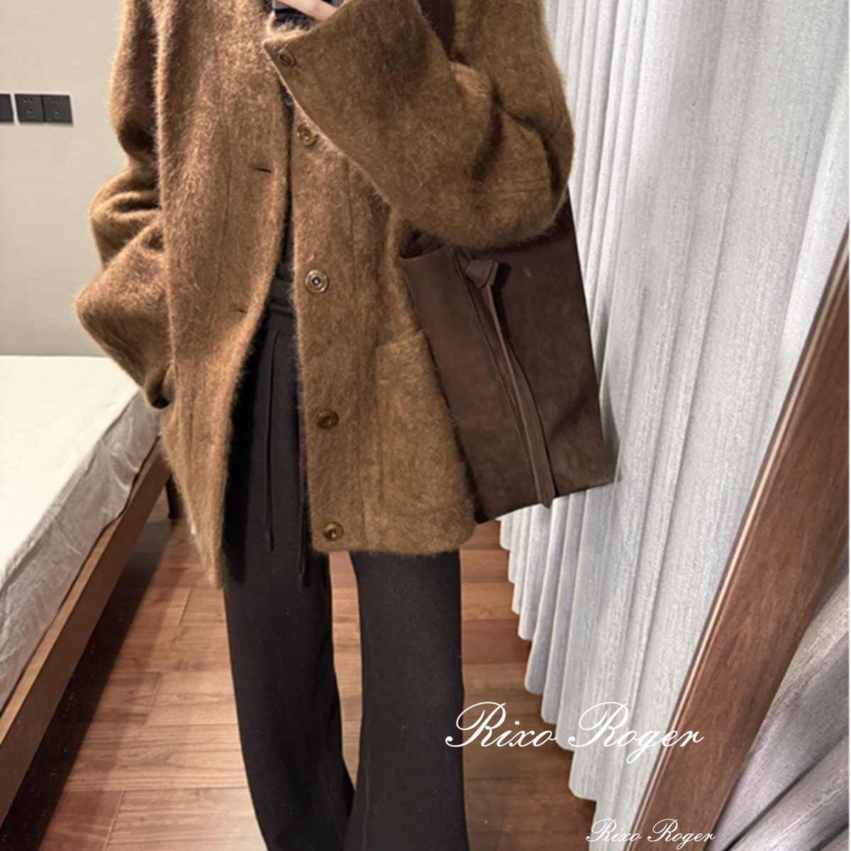 法国Rixo Roger 秋冬新款高级感休闲中长款呢子大衣v领毛呢外套女