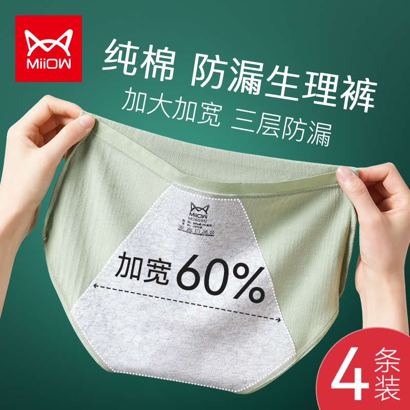 猫人生理期内裤女月经期防侧漏安全姨妈裤夏季薄款例假纯棉卫生裤