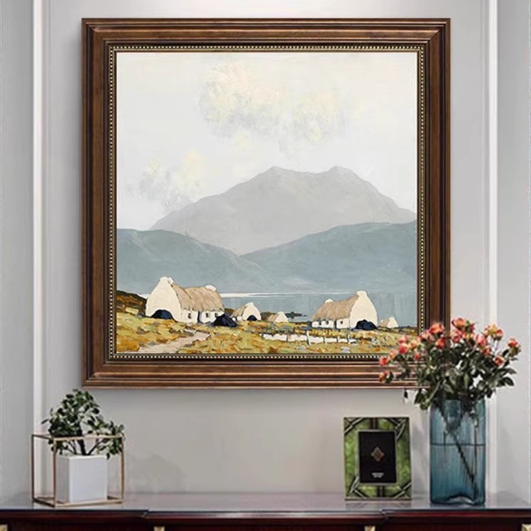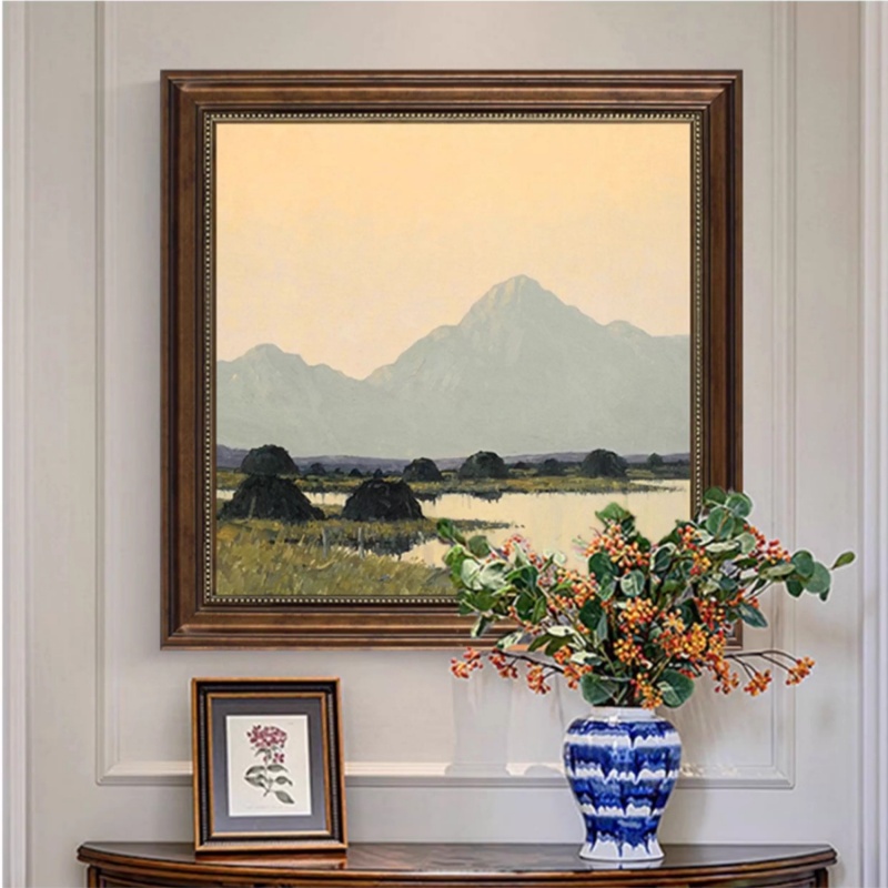 欧式客厅玄关装饰画仿油画复古山水风景壁画餐厅走廊过道美式挂画