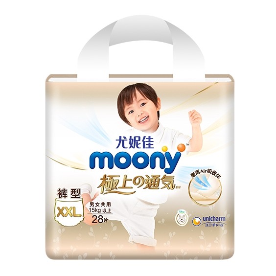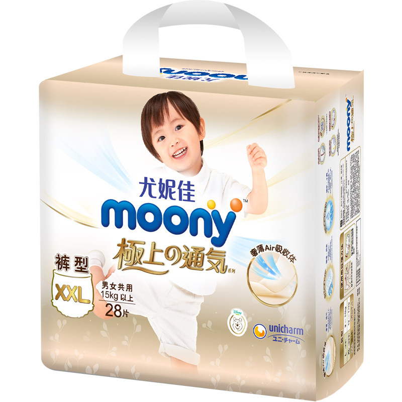日本尤妮佳moony极上通气婴儿裤型纸尿裤XXL28片*2尿不湿轻薄透气