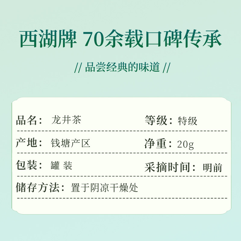 杭州茶厂西湖牌明前特级龙井茶叶20g浙江老字号 2025新茶 新包装