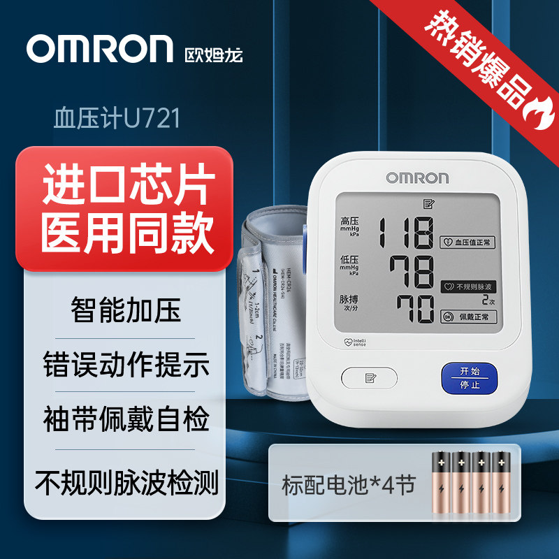 欧姆龙电子血压计U721高精准血压臂式测压仪全自动血压测量仪家用