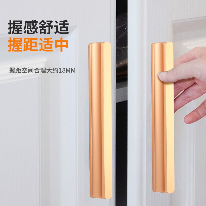 现代简约衣柜电视柜拉手轻奢极简抽屉长把手柜门黑色拉丝金明装