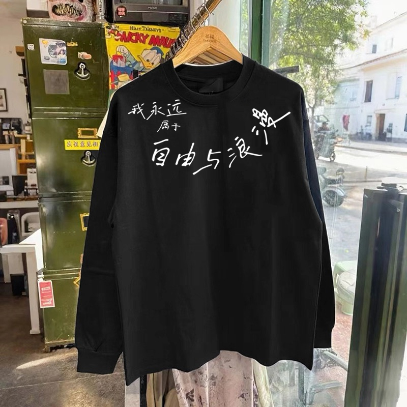 海外订单~秋冬潮牌长袖T恤男中国风自由浪漫纯棉重磅打底衫上衣女