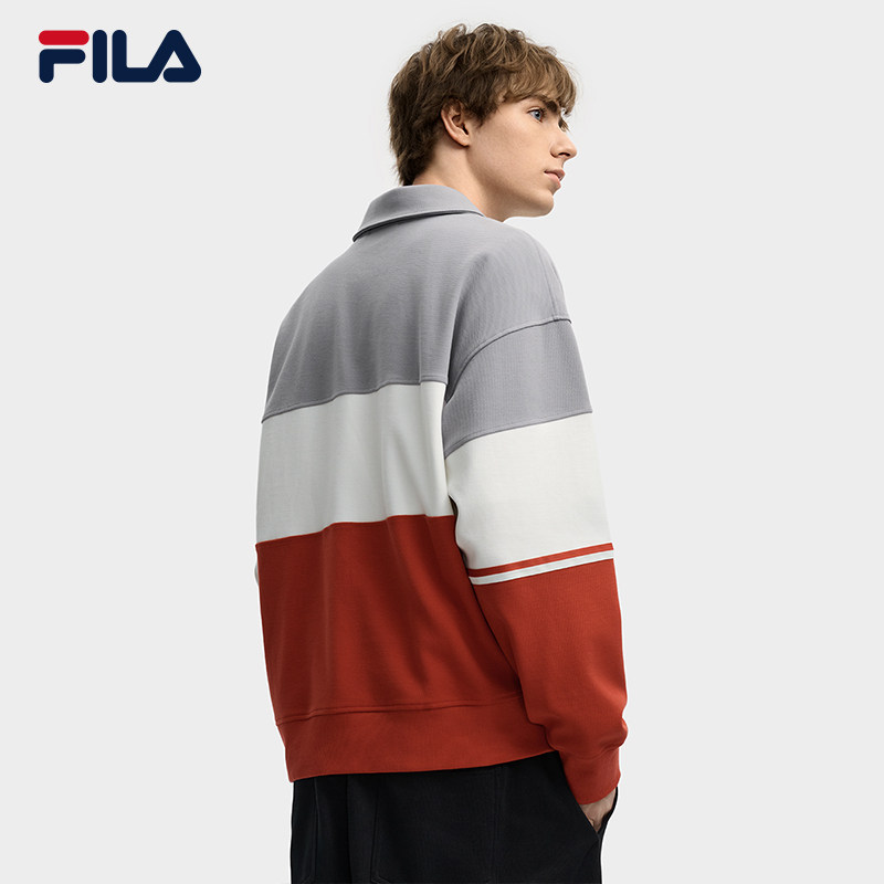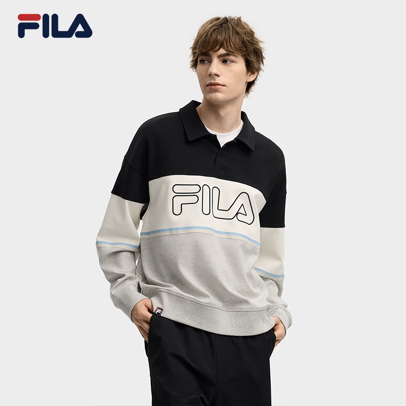 FILA 斐乐官方男子针织长袖POLO衫2025冬季新款休闲拼色纯棉上衣