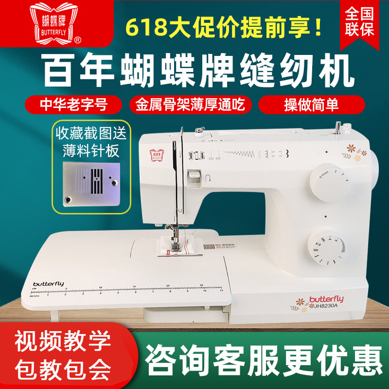 蝴蝶牌缝纫机家用电动多功能台式可锁边吃厚JH8230A/8330A/8530A