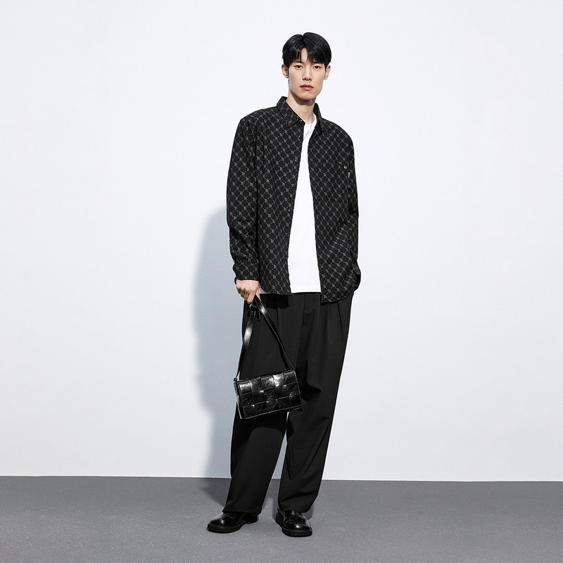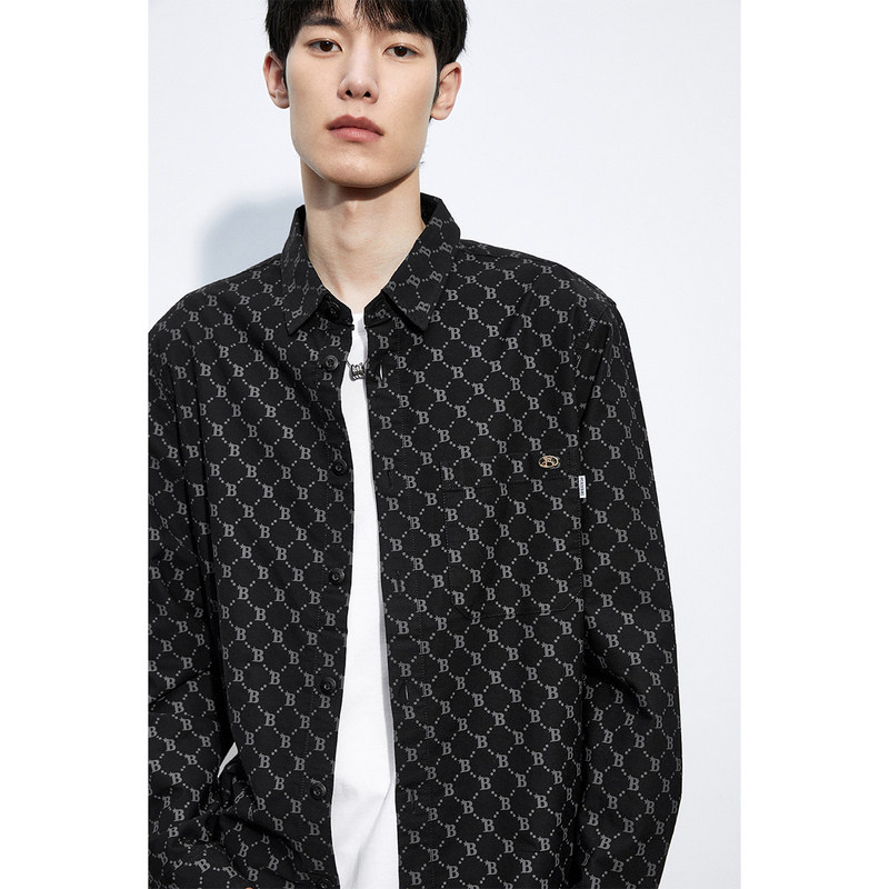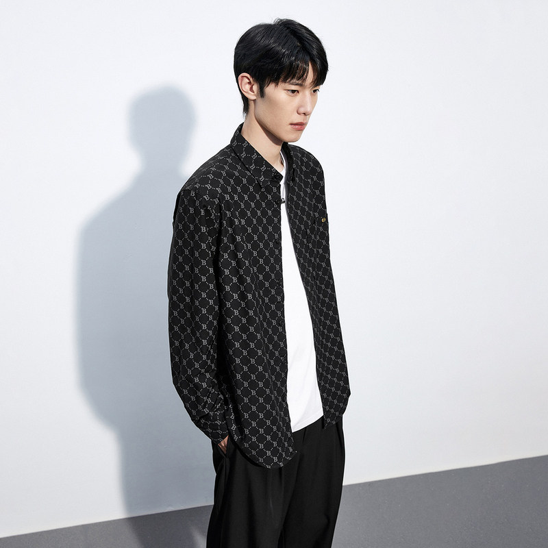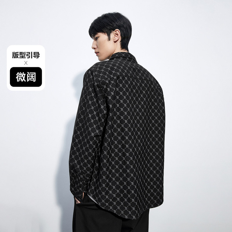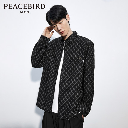 太平鸟男装 休闲衬衫秋季外穿式衬衫宽松老花衬衫经典休闲衬衣男