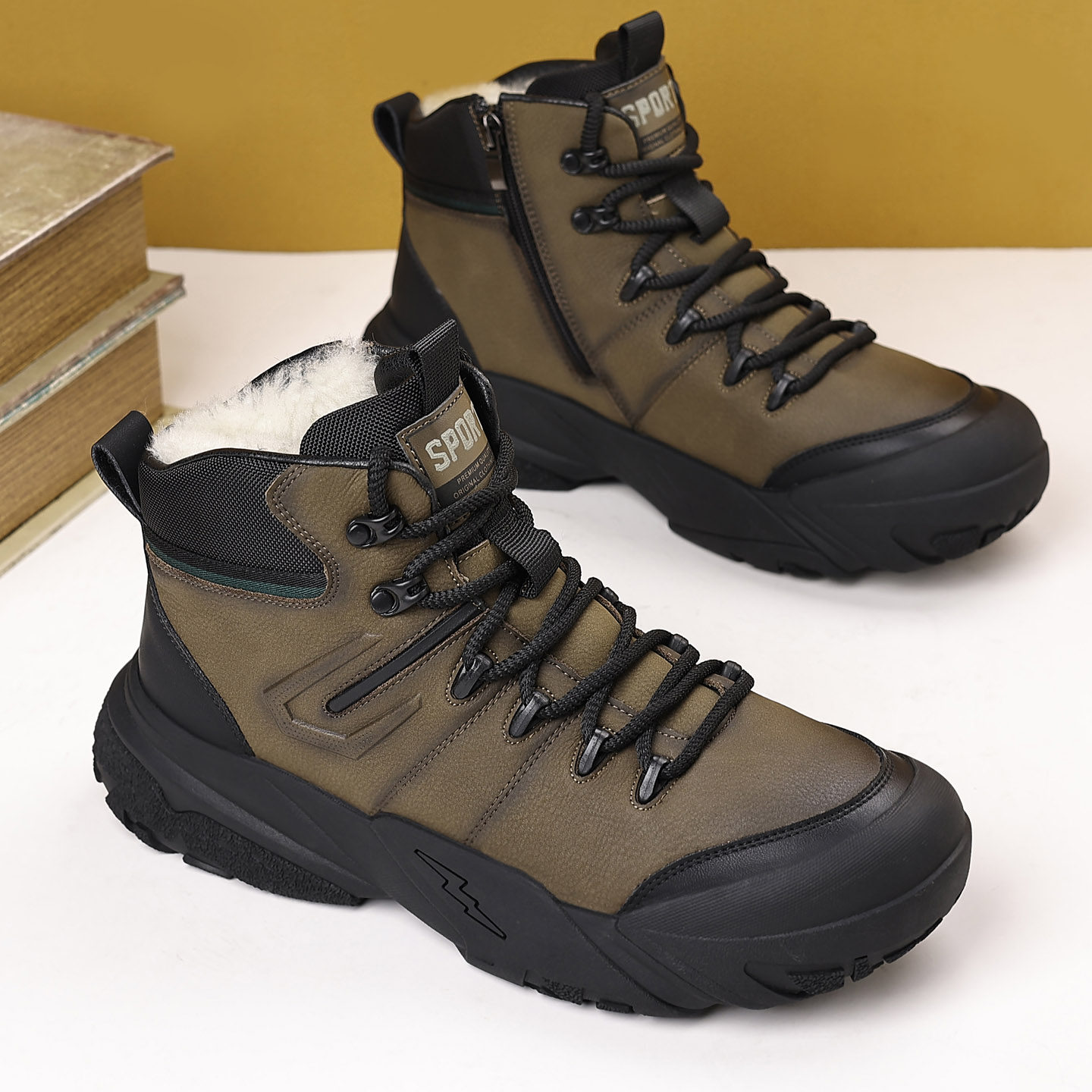 冬季新款男真皮羊毛皮毛一体加绒加厚棉鞋男士高帮保暖厚底棉鞋男
